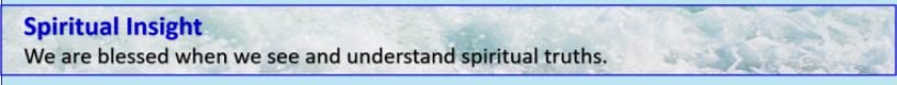 The Beatitudes: Indicators and Blessings of Spiritual TransformationJesusgaveusindicatorsof spiritualtransformationand sanctification—includingthe blessings(Beatitudes)during His Sermon on the Mount.