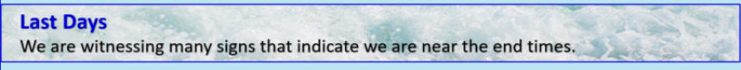 God Will Use Unprecedented Events During the Last Days to Save the LostChristiansmustknowwhat willhappeninthefuture—for thepurposeofpreparation andtofacilitatewarning others. This lesson explains